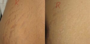 The Grove Clinic uses the advanced LaseMD ULTRA laser, which delivers short bursts of energy into the dermal scar tissue created by stretched skin. This process breaks down old tissue while stimulating new collagen production, ultimately improving both the texture and tone of the skin and making stretch marks noticeably less prominent.
